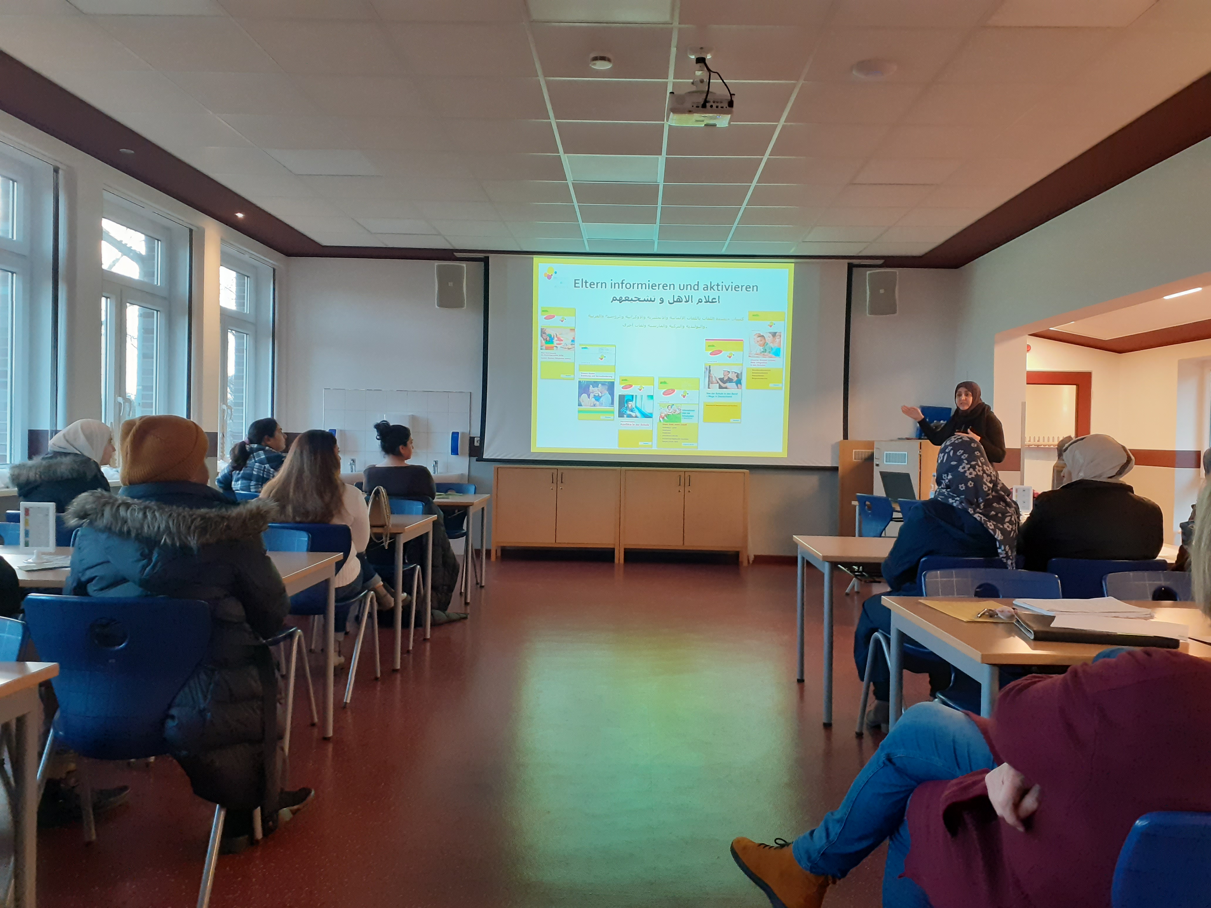 Der Vortrag unserer Kollegin Mariam Hendawi zu unterschiedlichsten Themen wie dem Schulsystem, Mehrsprachigkeit aber auch Religions- und Sexualkundeunterricht wurde sowohl von den anwesenden Eltern, als auch von den Mitarbeiter*innen der Grundschule Friedburg sehr positiv wahrgenommen. In der Folge ergaben sich bereits einige Anfragen und Wünsche nach Unterstützung. Dank der vermittelten Informationen konnten Hürden abgebaut werden und Eltern und Schulpersonal konnten viel einfacher in Austausch treten. Beide Seiten können sich nun auf Augenhöhe begegnen und es wurde ein Grundstein für ein tieferes Verständnis und eine zugewandte Zusammenarbeit gelegt.